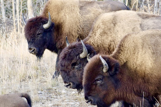 bison north west territoiries wildlife fort providence animal buffalo mammal cattle cow livestock sheep bovinae bull terrestrial_animal horn working_animal