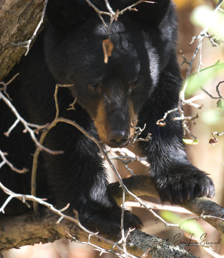 Black Bear Staring Me Down From A Apple Tree