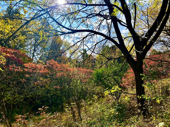 autumn colors plant vegetation land nature outdoors tree woodland grove scenery landscape leaf branch yellow green natural_environment twig orange ecoregion