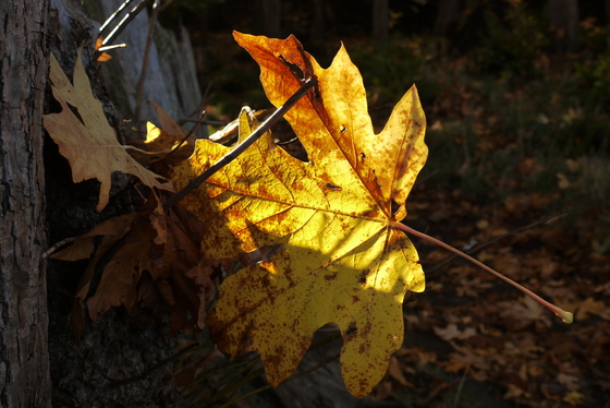 leaf plant tree maple maple_leaf yellow orange autumn close-up plant_pathology