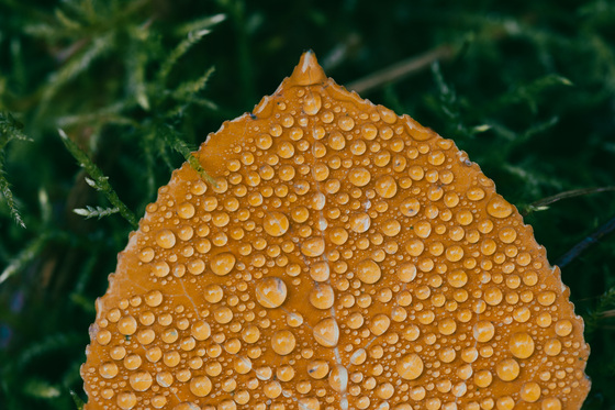 Fallen leaves covered in dew drops after a rain shower in Gander, NL. Taken Oct 2025.