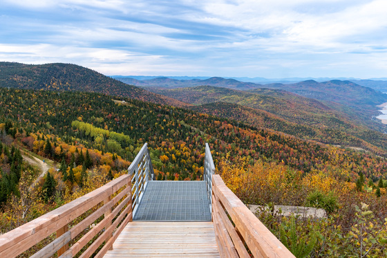 The walk up all the stairs was worth it! The view at the top of this hill at Le Massif ski mountain in Charlevoix is beautiful, especially in the fall. The mountain overlooks the famous & historic St-Lawrence River, with the coastal village of Petite-Rivière St-François in the distance.