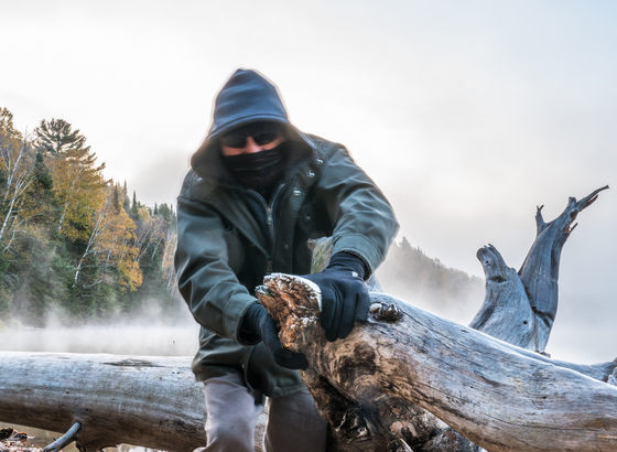 quebec nature outdoors fog morning people autumn wood clothing coat jacket plant tree adult male man person driftwood photography face head portrait hood