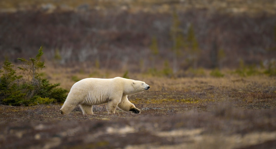 The male bear was following a female bear heading towards the shoreline as they wait for ice.