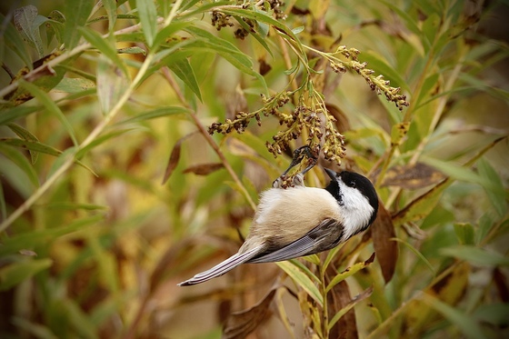Tagged: chickadee small bird black white feathers goldenrod eating seeds fall autumn cute animal finch beak plant vegetation wildlife black-capped_chickadee feather tit twig