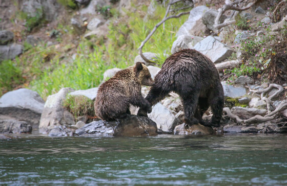 the cub wants to play but Mom wants to eat. The COY was nipping and grabbing mom just hoping things would become less serious