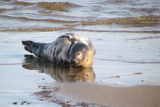 This seal was napping on an isolated part of a sand dune at low tide near our local wharf in Caissie Cape, N.B.