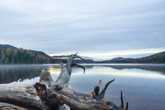 quebec tremblant landscape nature outdoors lake autumn wood driftwood plant tree water water_resources body_of_water natural_landscape cloud wilderness bank reflection