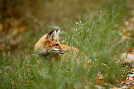 waskesiu princealbertnationalpark fall leaves grass gravelroad rural hunting animal canine fox kit_fox mammal wildlife dog pet red_fox carnivores terrestrial_animal grasses swift_fox