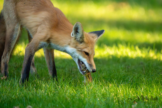 Fox was playing with a chipmunk. tossing it in the air, releasing it and catching it again.