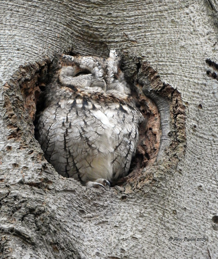Located deep in a Toronto Ravine spotted a Screech Owl sitting in 1 of the several holes in this tree