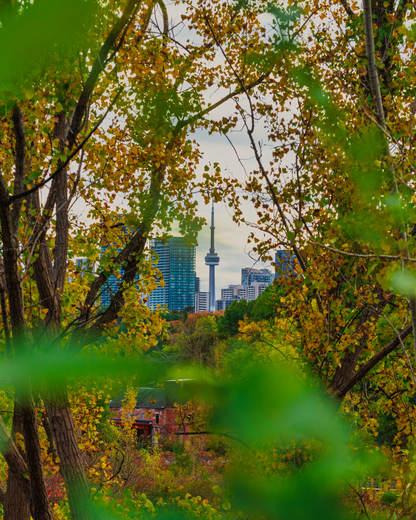 Tagged: cityscape landscape autumn plant tree tree_trunk leaf vegetation outdoors yellow twig sunlight tower skyscraper