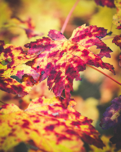 A yellowed maple burning fiery red in the afternoon sun. The last vestiges of autumn before the incoming snow.