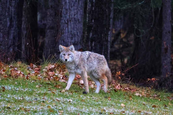 This beautiful young coyote was hunting along the tree line.