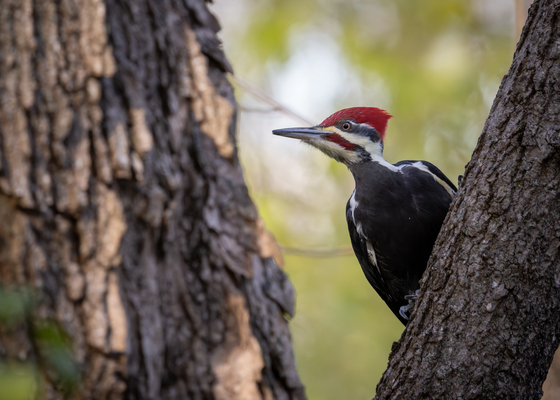 Pileated woodpecker playing hide and seek