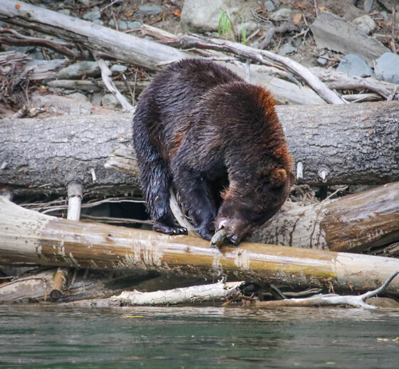 This sow plucked a salmon out of the river - this is late summer and she is small so a feeding frenzy is in order