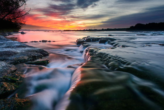 quebec sunrise landscape nature outdoors rapids river sky scenery water sunset sunlight stream dusk cloud afterglow fluid natural_landscape rock evening