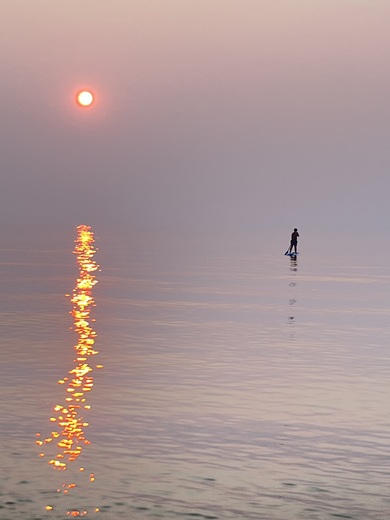 nature outdoors sky sun sunrise person sea water scenery flare light boat sailboat transportation vehicle horizon fluid orange dusk liquid sunset reflection