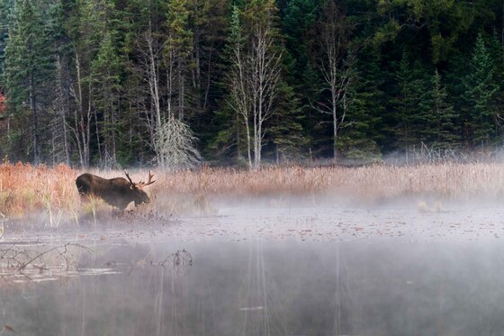 This bull moose was spotted near Cache Lake at sunrise in Algonquin Provincial Park. October, 2025.