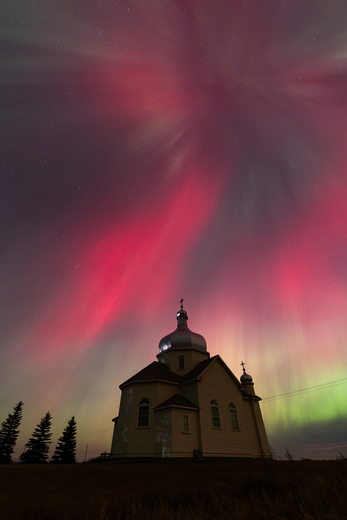 saskatchewan aurora northernlights gravelroad astrophotography church canada nature night outdoors sky fir plant tree architecture building shelter spire tower dome