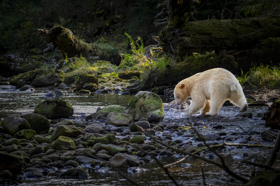 Tagged: spirit bear animal mammal wildlife outdoors water rock nature wilderness stream watercourse fluvial_landforms_of_streams forest nature_reserve