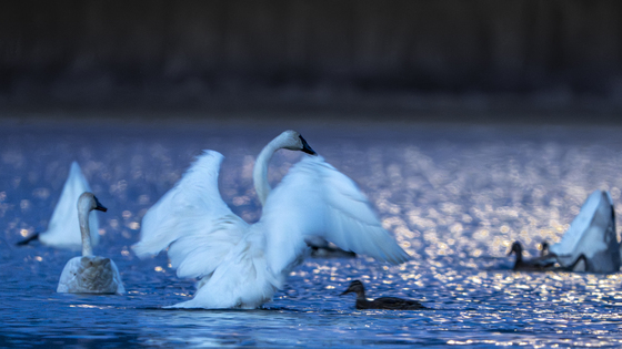 At the last full moon I went to the Lewes Marsh, just outside of Whitehorse. To my surprise there were still a few swans and ducks hanging out. With more and more water freezing up here in the north, it is time for the waterfowl to head south! The blue hour created a special look and the reflecting moon light set the stage for this shot.