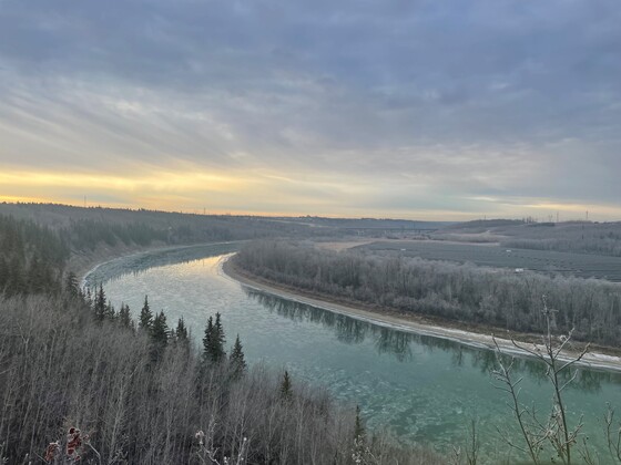 The North Saskatchewan River in Edmonton is starting to freeze. I took of photo of this ethereal scene in the river valley on a frosty November morning.