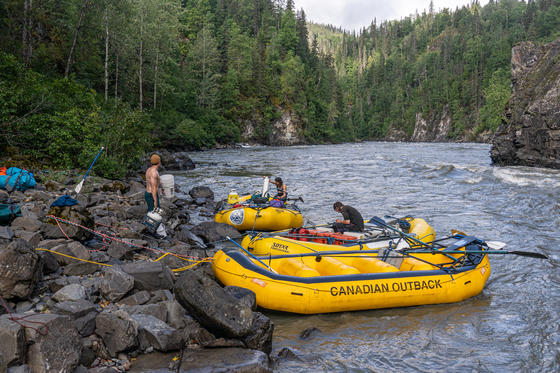 On a 6-day rafting trip of the Babine River. There were no roads in or out of the area where we rafted. If worse came to worse, the only way out was by using a satellite phone and calling in a helicopter. Fortunately there were no accidents occured. It rained daily, and water ran fast.