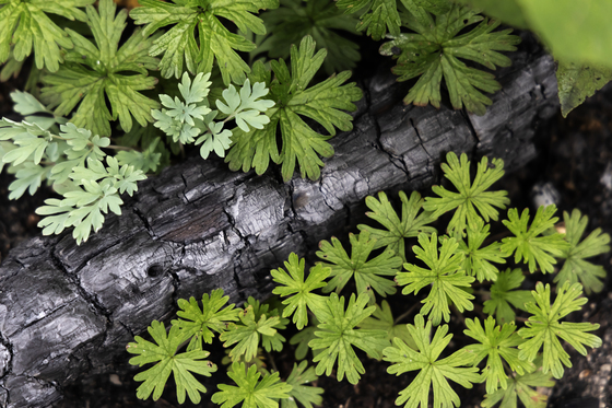 This image was taken near Lac du Bonnet, Manitoba where forest fires devastated the community and surroundings. As I went back there this fall and found that the life is taking its course back to regeneration . In this image leaves can be seen taking over a charred fallen tree as the forest is slowly coming back to life.