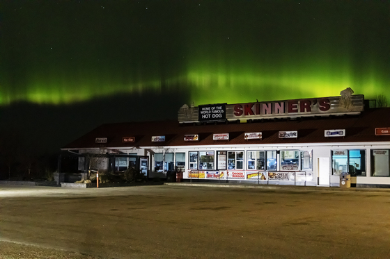This fall most of the Canada witnessed a spectacular northern lights event which was visible to the naked eye even in the cities. like many I decided to head out and drive to this small town of Lockport near Winnipeg in anticipation of a perfect northern lights photo. My search ended at this restaurant where the lights seemed to have totally aligned with the structure and were illuminating the building!
