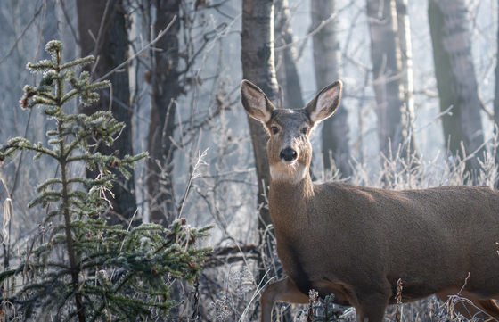 A mule deer amongst the frosty morning.