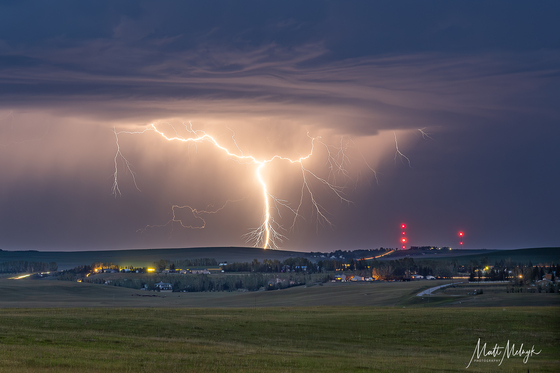 A severe nocturnal thunderstorm from NW Calgary offered a great light show opportunity to photograph.