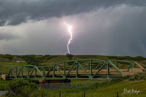 A severe storm south of Camrose Alberta left a long lasting lightning show for storm chasers to watch and photograph.