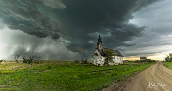 A severe thunderstorm in Saskatchewan created a spooky scene behind an abandoned Church.