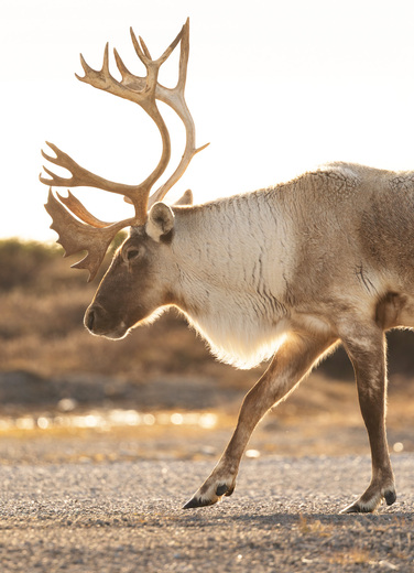A stag that was drove away from the herd walks along the barrens pursuing a doe on this beautiful sunny day ... calm before the storm. Later in the week this beautiful stag collected three does establishing his own herd.