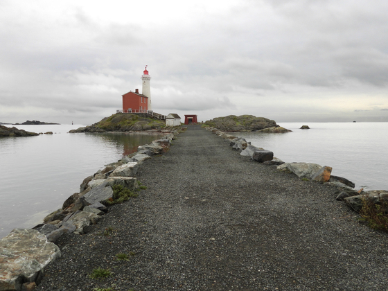 The Fisgard Lighthouse, situated at the entrance of Esquimalt Harbour near Victoria, British Columbia, is the oldest lighthouse on the west coast of Canada. The British colonial government of Vancouver Island built it between 1859 and 1860, and on November 16, 1860, its light first shone. When it was constructed, British Columbia was not yet part of the Canadian Confederation, which happened in 1871. The lighthouse was an essential navigational tool for the British Royal Navy and merchant vessels during the Fraser River gold rush. It was also a symbol of British sovereignty in the region. Military activities at the site ended in 1956 as the facilities became outdated, and it is now a National Historic Site managed by Parks Canada.