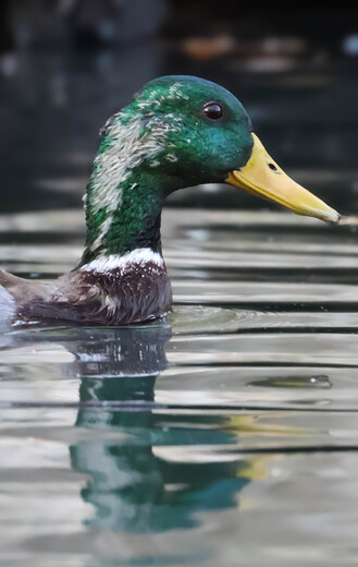 Love the dark, iridescent-green head and bright yellow bill of male mallards. Lucky to also catch a nice reflection
