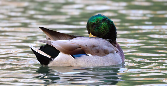 mallard duck waterfowl preening feathers colors wildlife birding pond citypark nature summer male winnipeg teal animal anseriformes bird beak ducks water_bird vertebrate fluid liquid