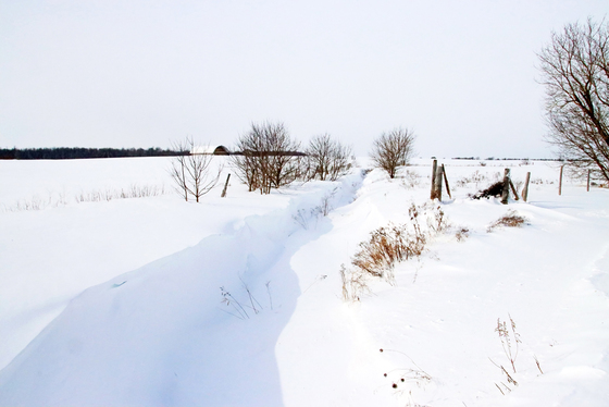 "Winter Creek Snowdrifts" by Debbie Oppermann. Driving country roads in winter is sometimes a challenge as they are icy but it is worth the extra cautious driving to enjoy the beauty of the rural areas. This snow laden deep creek running through a farmer's field and between wooden fences was just lovely in it's simplicity. The deep snowdrifts on the one side and the snow covered grass and wildflower field on the other side with the shadowed creek running through it made such a wonderful winter landscape. I was really happy to find this gem of a winter scene.A vast snow-covered landscape stretches into the distance, with bare trees lining the edges of a narrow, snow-filled path. The crisp white snow contrasts sharply against the overcast winter sky, creating a tranquil and serene scene. Sparse vegetation pokes through the snow, adding subtle texture and depth.