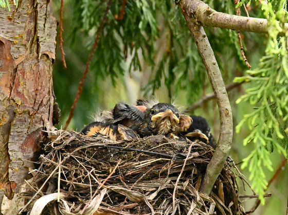 It was truly amazing, a gift from Mother Nature, to watch these baby Robins grow and fledge. Here, this little Robin has a look that only a mother could love.