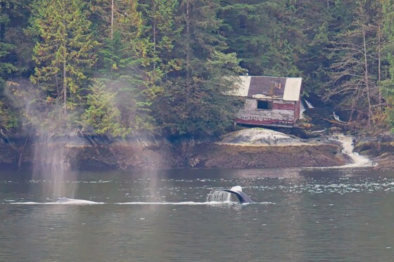 Travelling along the "Inside Passage" on BC's west coast you will pass by an abandoned cannery / mining / logging settlement on one of the many islands. The settlement is called "Butedale". You will also probably encounter whales, humpback and orca. I was delighted, on a recent voyage, to find some humpbacks hunting along the Butedale shoreline.