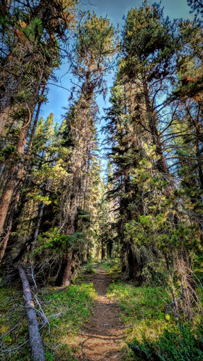 This was a narrow hiking trail in Banff.....the evergreens went on forever