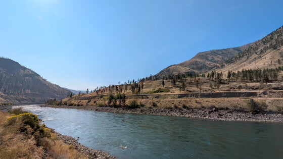 Tagged: trees river nature landscape dry sparse mountainous terrain summer outdoors scenery wilderness water plant tree fir lake mountain mountainous_landforms water_resources body_of_water hill natural_landscape highland watercourse bank