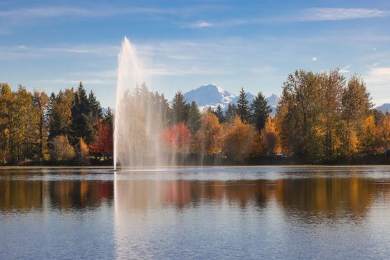 Tagged: fall british columbia cities parks mill lake multi colour water architecture fountain nature outdoors fir plant tree scenery water_resources natural_landscape landscape reflection watercourse bank