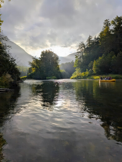 Tagged: raft drift river nature sunlight summer lush forest trees sky clouds reflections adventure serenity bellacoola boat canoe canoeing leisure_activities person rowboat sport transportation vehicle water water_sports outdoors scenery lake plant vegetation water_resources body_of_water mountainous_landforms watercourse natural_landscape mountain bank waterway