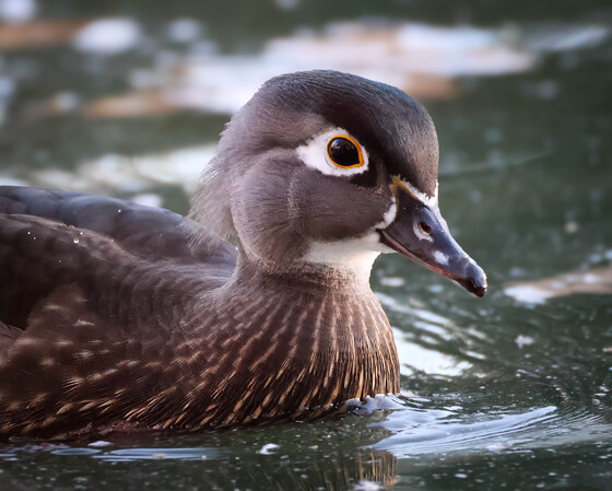 You can identify a female wood duck by the tear shaped pattern around their eyes. Although less colorful than their mates, their feathering is quite beautiful as well.