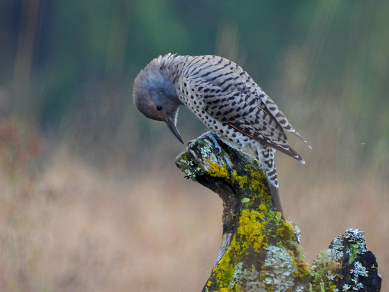 I love my morning birding walks at home where I reside in the Kootenays. There is so much wildlife and I never know who I'm going to see. On this morning, a few Northern Flickers were hopping along old beached logs, picking away at them, likely in search of ants, beetles, or larvae. I sat quietly nearby on a log and just watched them. I take my camera everywhere. The fall colors and plumage of the flicker were a such pretty scene, and I snapped away taking photos as they made their way along the logs in the misty morning light.