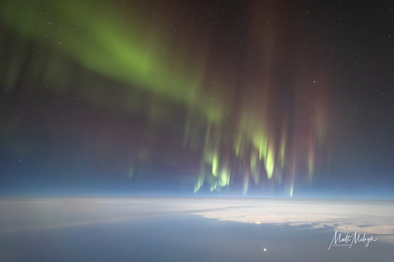 Dec 07th. Another successful Aurora flight on the Dreamliner! The last few months have been such a treat. This flight was from Calgary Ab. to London UK at 37,000 feet. This was the view over the Hudson Bay and Baffin Island. The almost full moon behind us, lit up the ground and clouds below very nicely.