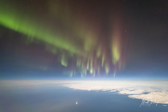 Dec 07th. Another successful Aurora flight on the Dreamliner! The last few months have been such a treat. This flight was from Calgary Ab. to London UK at 37,000 feet. This was the view over the Hudson Bay and Baffin Island. The almost full moon behind us, lit up the ground and clouds below very nicely.