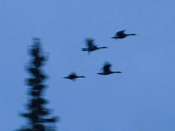 Canada geese make a late evening flight past our camp on the Dease River. Panning with a slow shutter speed.